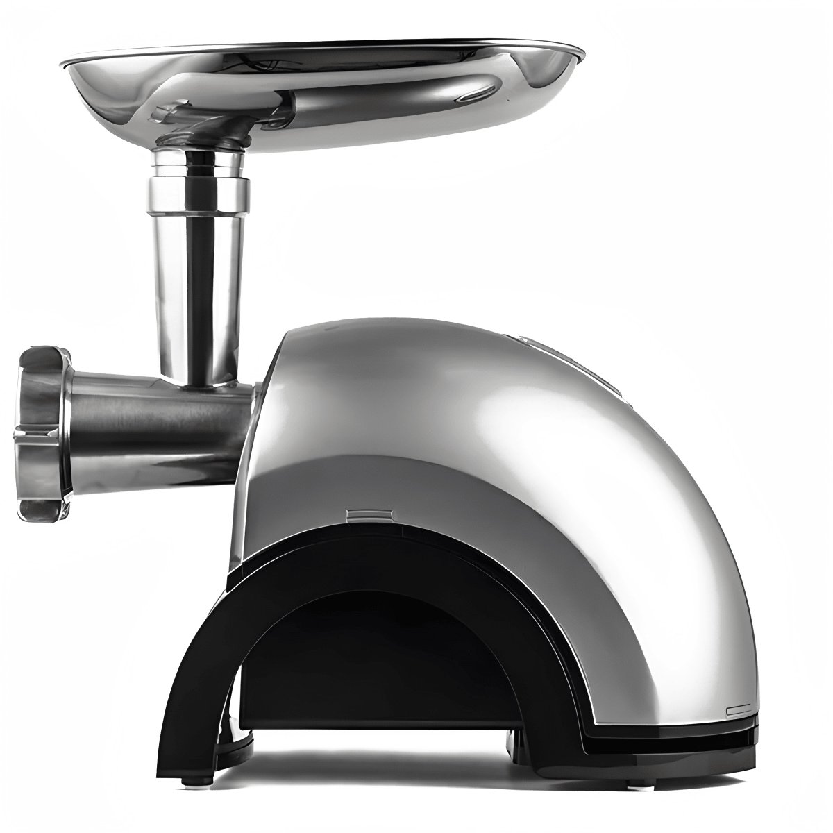 Introducing the ultimate SAUTER industrial meat grinder! Made from high-quality stainless steel, with a No. 8 large opening, this machine boasts cast construction for durability over years. Features include a reverse switch for releasing stuck food and advanced illuminated control buttons in a sleek stainless design. A unique iron connector ensures long-lasting resilience, tackling even the toughest foods. Includes 3 stainless steel grids and a high-quality cutting blade for maximum durability. Accessories include sausage/kebab making tools and a cookie shaping device. Minimum power of 600 watts and maximum locked motor of 1800 watts.