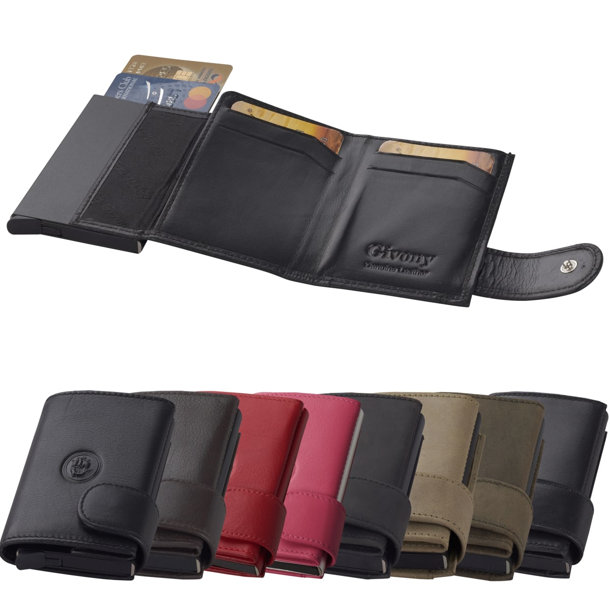 ארנק עור בטיחותי עם טכנולוגיית RFID ו-NFC להגנה מקסימלית על כרטיסי האשראי שלכם. כולל מנגנון לשליפת עד 4 כרטיסים, תא לשטרות ו-4 תאים נוספים לכרטיסים. זמין במגוון צבעים וסוגי עור: נאפה בשחור, חום, סגול, אדום וורוד; כאמל בבהיר, שחור וכהה; האנטר בשחור וחום; ונייקד בשחור. מידות: 9.5x7 ס"מ.