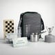 Perfect for travelers, includes a Giga Power stove and stainless steel pot. The set also contains storage for coffee and sugar, a spoon, and three glass cups. Can be attached to backpacks and bicycles.