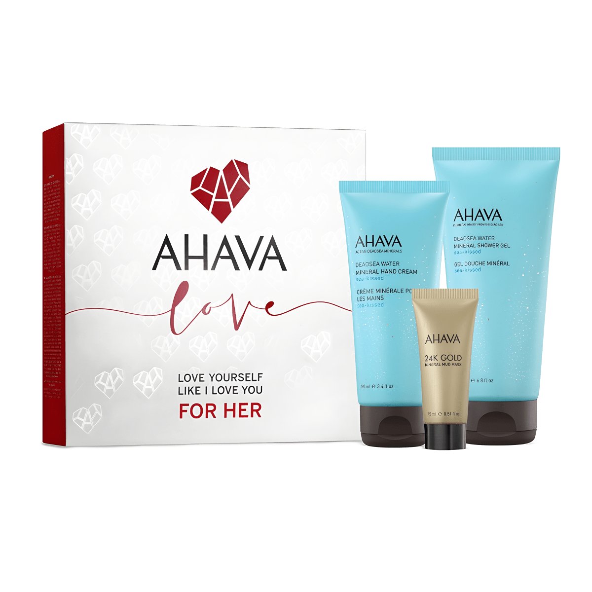 ערכת טיפוח מינרלית מושלמת לאישה עם קרם ידיים, ג'ל רחצה ומסכת זהב מבית AHAVA