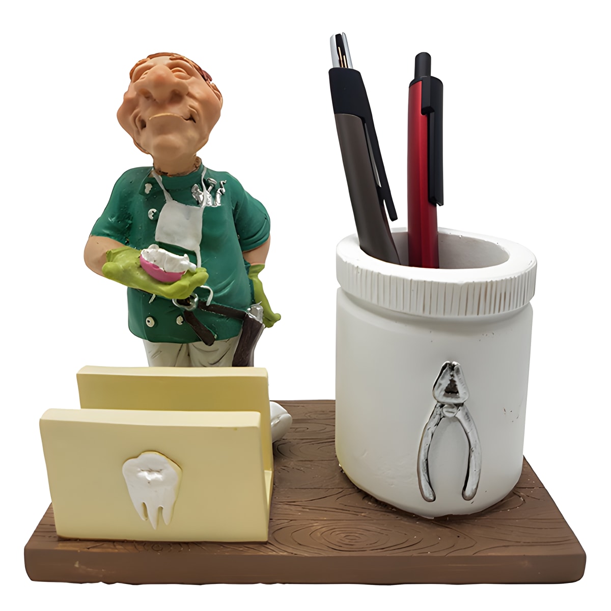 מעמד שולחני ייחודי לרופא שיניים עם כוס לעטים וכרטיסי ביקור