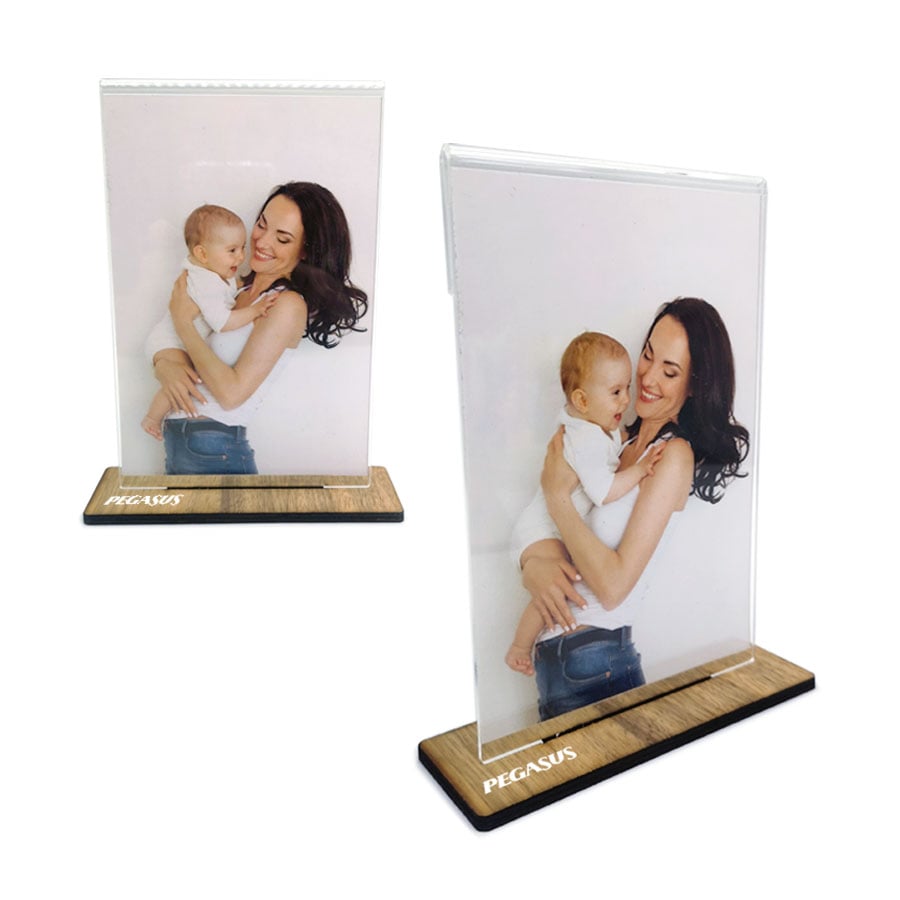 This vertical frame combines plastic and quality wood for a unique appearance.