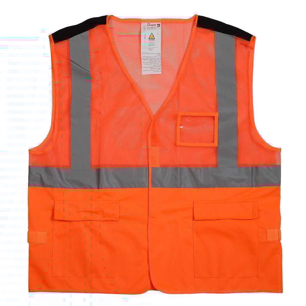 אפוד צוות קרקע זוהר עם תו תקן ישראלי ותקן אירופאי EN20471. האפוד משלב בד ורשת בחלק העליון וכולל פסים מחזירי אור ברוחב 50 מ"מ. מידות זמינות:
