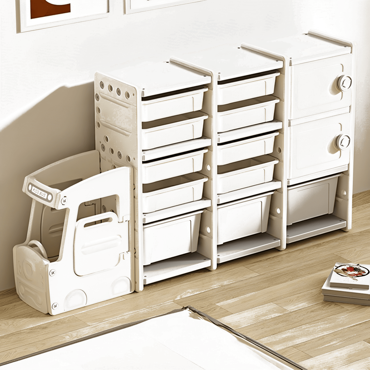 הציגו את ארגונית הילדים הטובה ביותר בצורת משאית לכל חדר ילדים! מגירות נשלפות מרווחות בגודל בינוני וגדול, מתאימות לספרים ושלל צעצועים. עם צבע