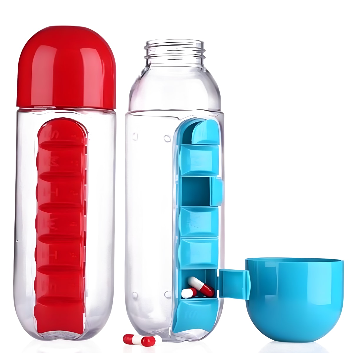 מי אמר שאין פתרון מושלם לשכחת נטילת תרופות? הכירו את הפתרון האידיאלי והנוח: בקבוק מים בנפח 600 מ"ל משולב עם ארגונית שבועית לתרופות. מתאים לש