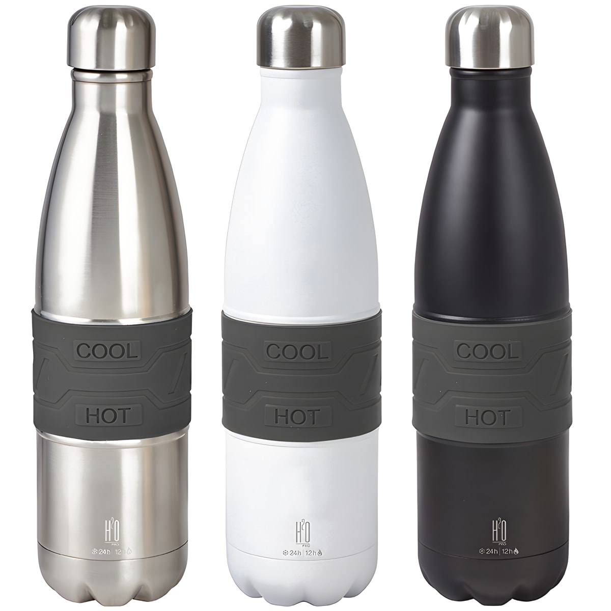 בקבוק תרמי נירוסטה 750 מ"ל מבית H2O-Pro מיועד לשמירה על טמפרטורת המשקאות. זמין בגימור נירוסטה, לבן ושחור, אידיאלי לשימוש יומיומי או לטיולים.