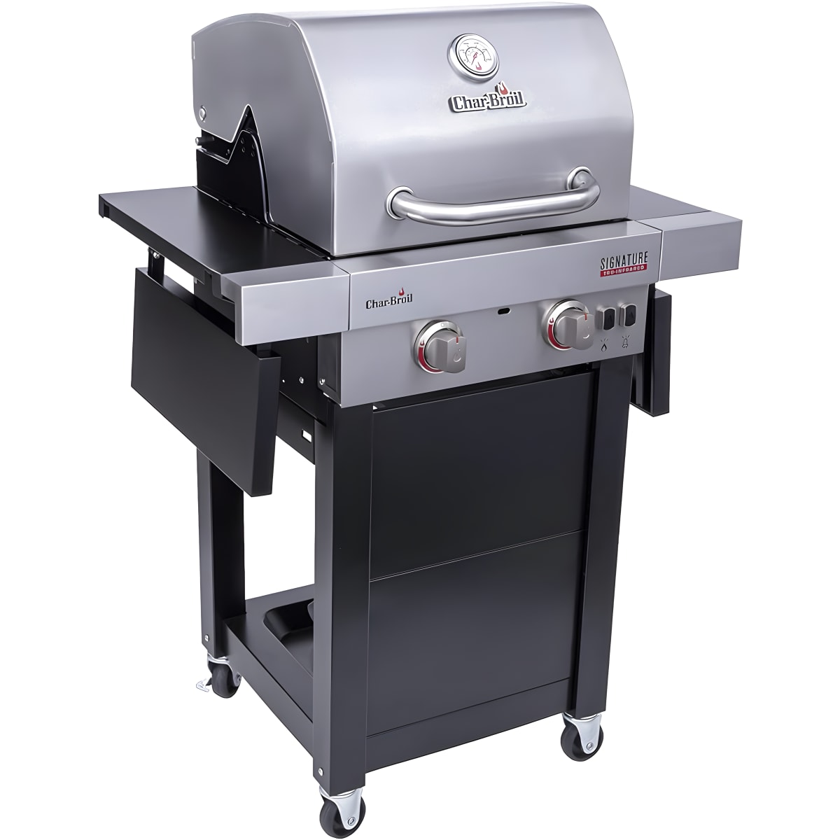 גריל אינפרה אדום SIGNATURE הכולל 2 מבערים מציע טכנולוגיית TRU-Infrared למניעת התלקחויות ולבישול אחיד. הגריל מתחמם במהירות ומספק חיסכון של 30% בגז. המאפיינים כוללים 2 משטחי צלייה מנירוסטה, רשתות ברזל יצוק מצופות, מדפי צד מתקפלים, רשת חימום עליונה, תיבת אחסנה עם דלת, מד טמפרטורה, 4 גלגלים לניידות ונעילה בטוחה, כמו גם הצתה אלקטרונית SureFire®. הגריל מגיע עם כיסוי מתנה!