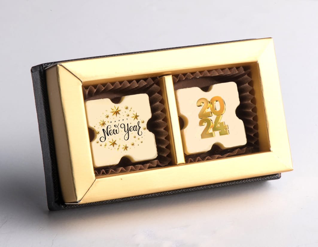 זוג פרלינים איכותיים ממותגים באריזה מהודרת - פרווה/חלבי