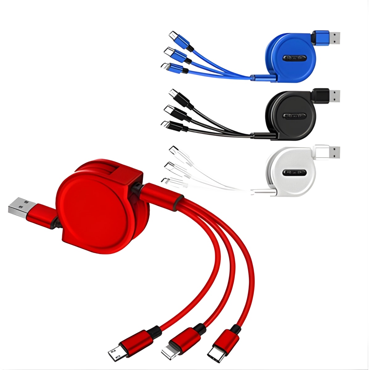 כבל טעינה קפיצי אוניברסלי מהיר 3 ב-1 - 2.4A בגלגלת