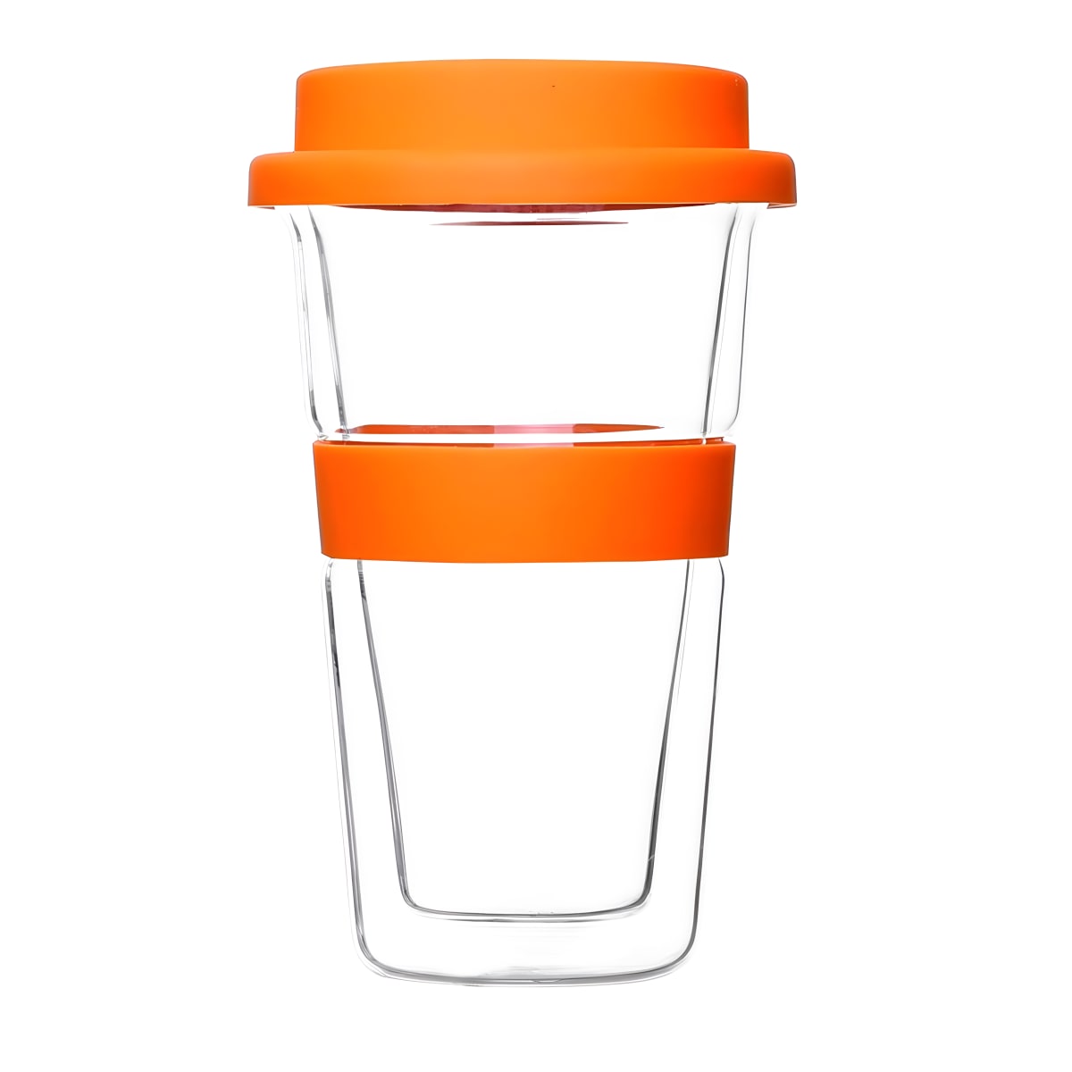 כוס זכוכית עם דופן כפולה ומכסה סיליקון - ביקל 370 מ"ל