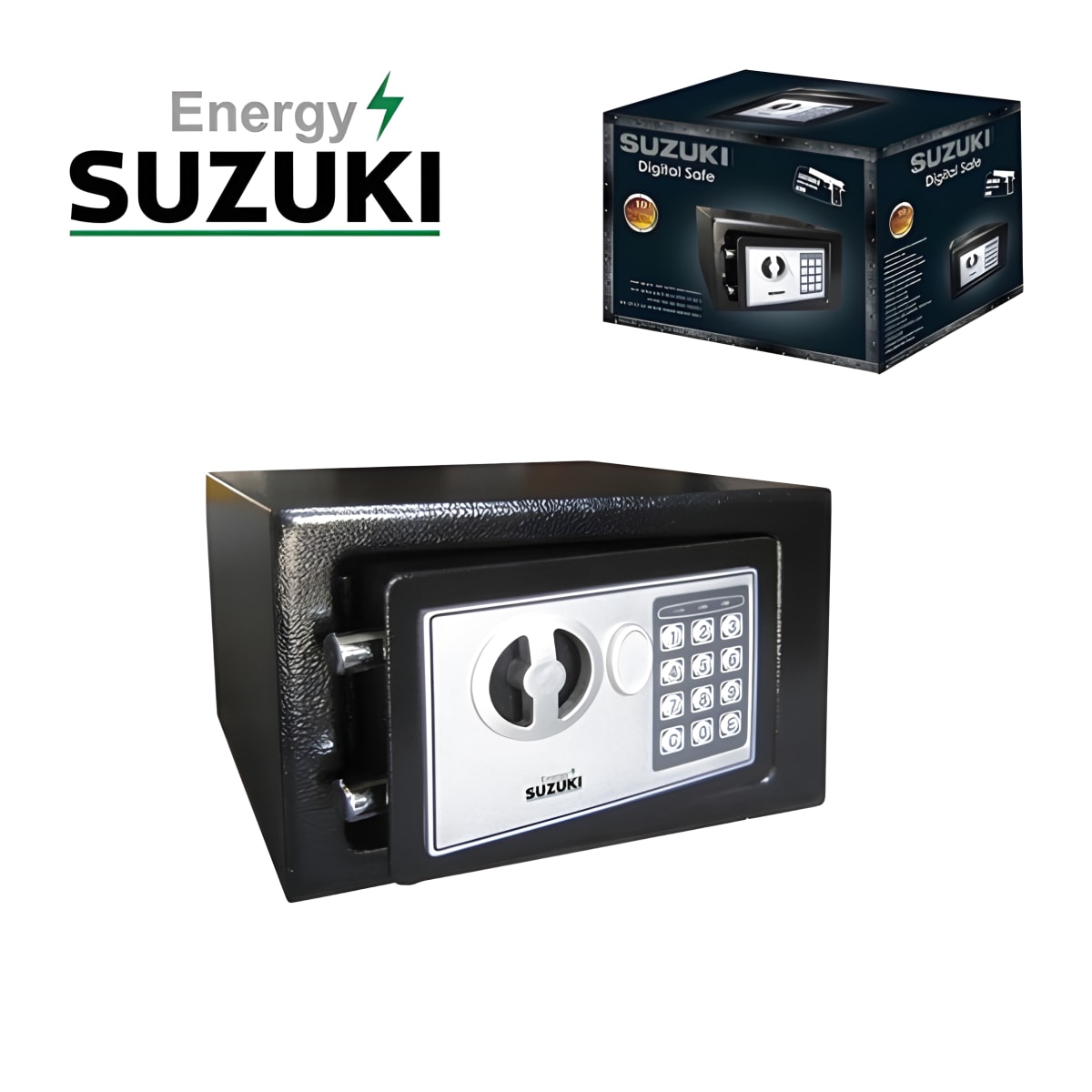 הבטיחו את רכושכם עם כספת דיגיטלית שחורה SE-18 של סוזוקי. עם ממדים של 23/17/17 ס"מ, היא כוללת אפשרות חיבור לקיר, ארון או רצפה. הכספת מוגנת בק