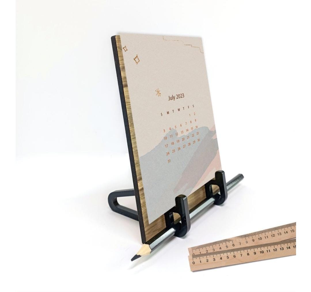 לוח שנה מעוצב מעץ עם כרטיסיות ממותגות