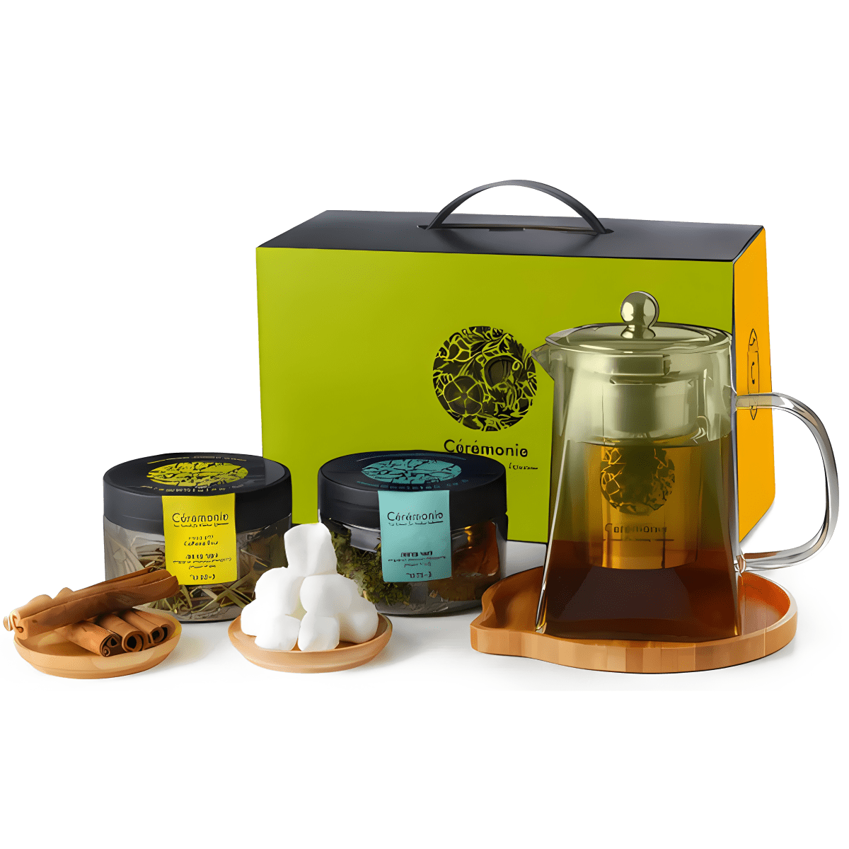 מארז דרור מבית סרמוני המארז מכיל: קנקן זכוכית סרמוני 750 מ"ל תפזורת בצנצנת פלסטיק מהודרת - לימונית לואיזה תפזורת בצנצנת פלס
