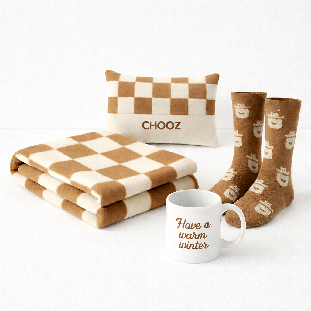 מארז חורפי ממותג לבית - כולל גרביים, שמיכת פליז, כרית חימום וספל קרמי