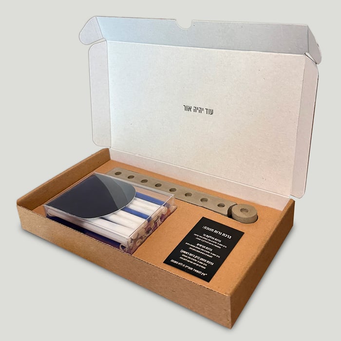 גלה את מארז החנוכה היוקרתי שלנו המשלב חנוכייה חדשנית מבטון ופרספקס עם חבילת נרות וברכת חנוכה. מינימום הזמנה: 50 יחידות.