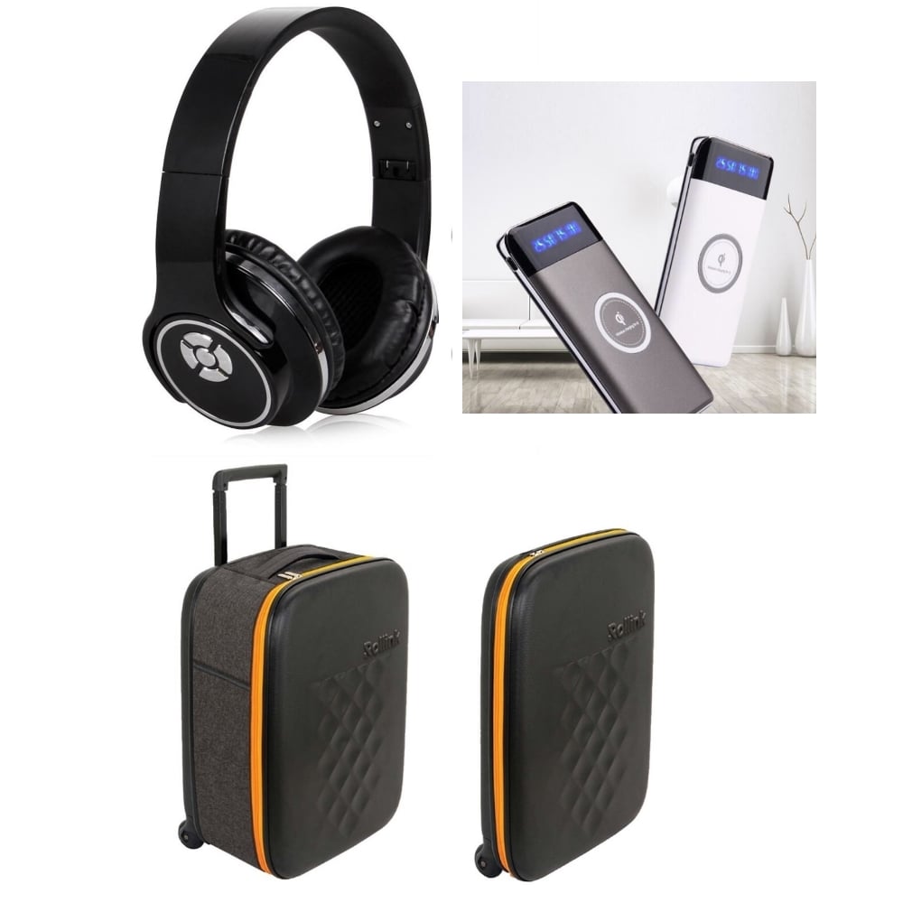 הכירו את מארז הטיסה המושלם שכולל: מזוודה דקה וחדשנית, אוזניות בלותות' מתהפכות ומטען נייד עוצמתי של 10,000 MAH. מזוודה מתקפלת בעיצוב פורץ גבו
