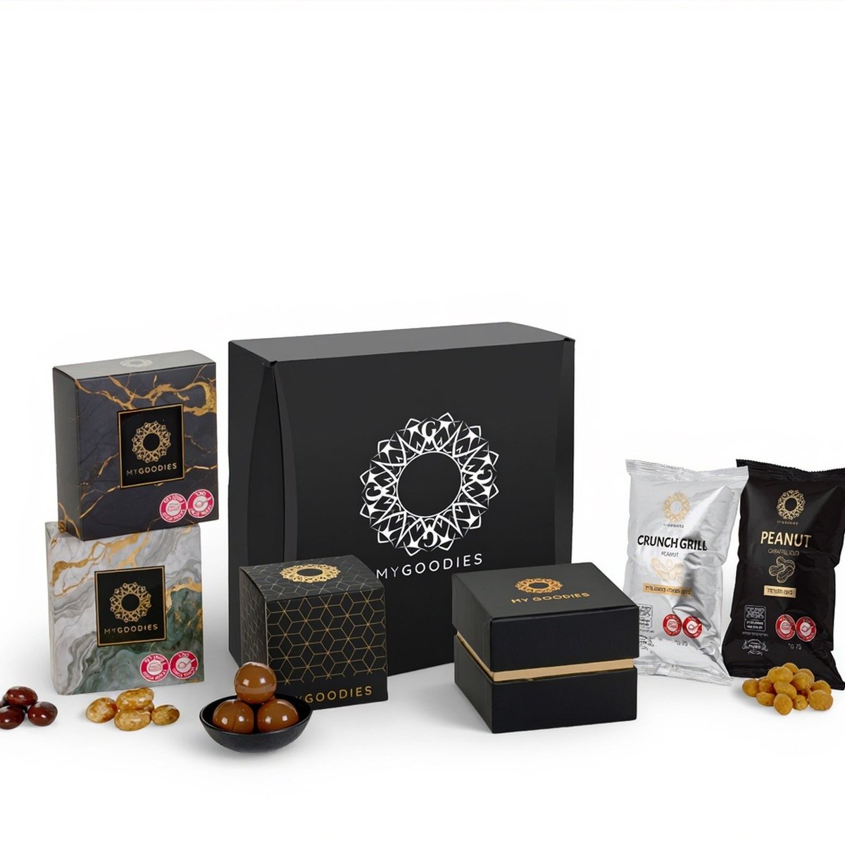גלה את מארז ונוס שחור המושלם שכולל אגוזי פקאן מקורמלים בעיטוף שוקולד, שקד בעיטוף שוקולד חלב, אגוזי קשיו עם נגיעות קפוצ'ינו, קראנץ' גריל, בוטן קלוי ומקורמל, ופרליני שוקולד חלב עם קרם חלב. מתנה עסקית כזו תגרום לשובבות ולאושר כאחד, עם אפשרות למיתוג לוגו. המתנה שתשאיר רושם מתמשך עליכם ועל מקבלי המתנה.