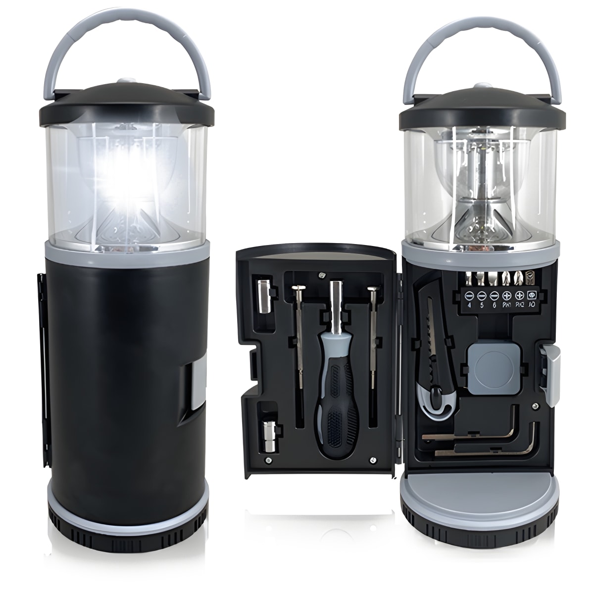 השדרג את חיי הבית שלך עם מארז הבית האולטימטיבי - פנס עששית רב מצבים וסט כלי עבודה מתקדם עם 19 חלקים. הפנס בעל תאורה מתכווננת מספק פתרונות או