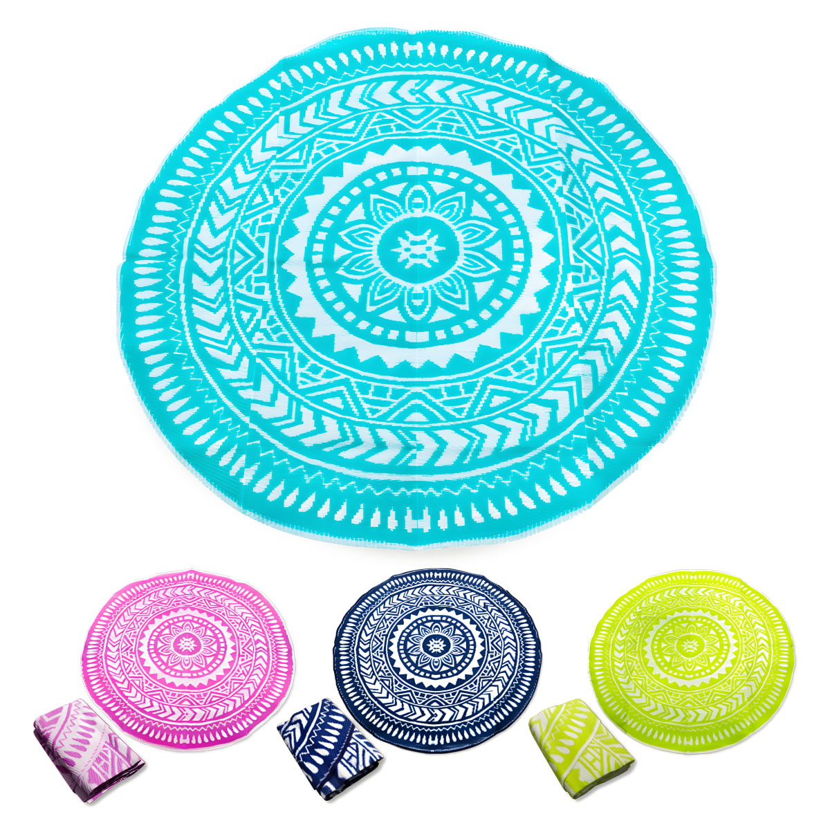 תיהנו מהפנאי עם מחצלת זוגית עגולה מפוליפרופילן איכותי. ניתנת לשימוש בחוף, בפארק או בבית לפיקניק מושלם. קלה לנשיאה עם תיק כלול ומידות של 150