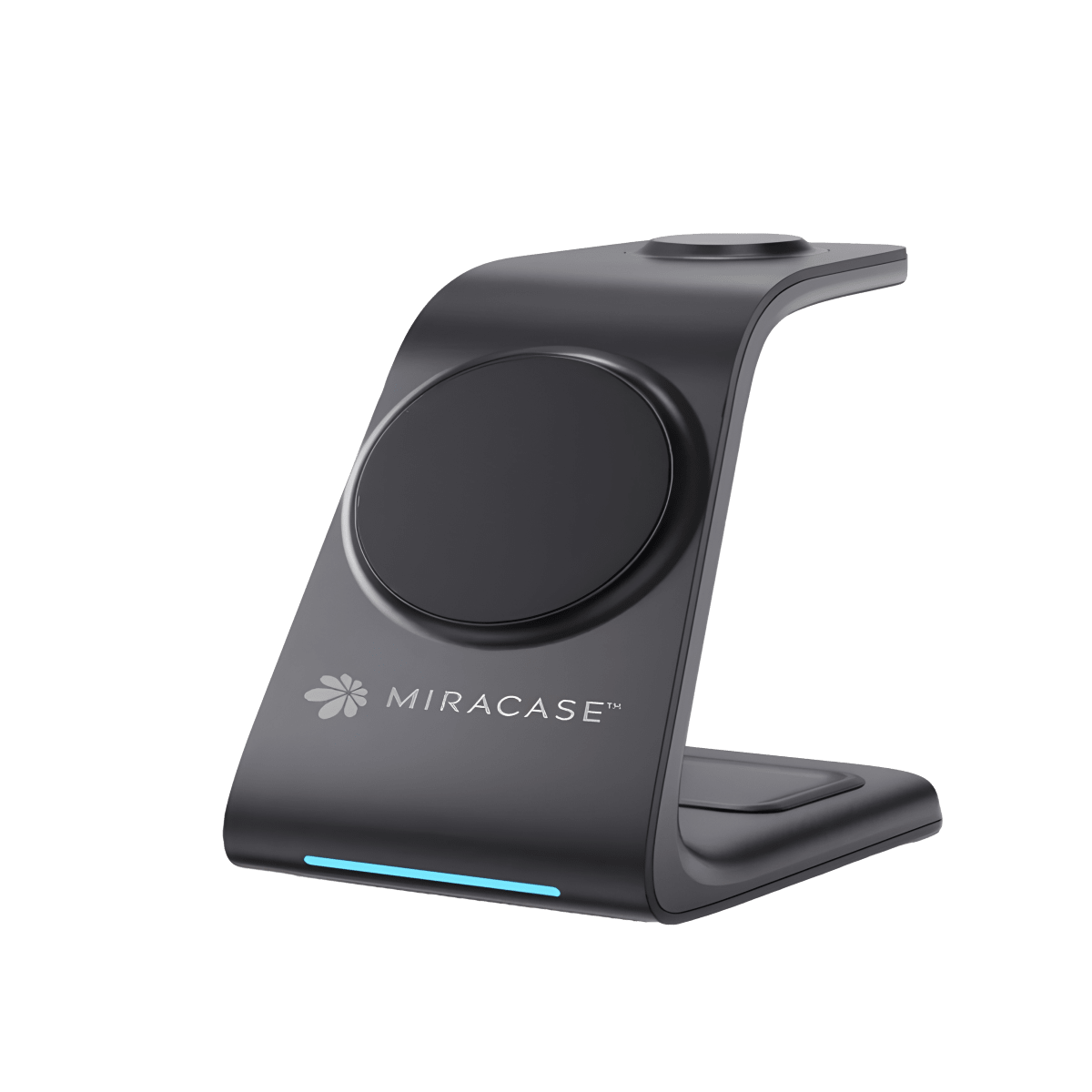 הטען את המכשירים שלך בצורה אלחוטית ומהירה עם מטען 3 ב-1 ממותג Miracase. מתאים לכל מכשירי אפל ו- Qi, טען מספר מכשירים בו זמנית.טעינה אלחוטית