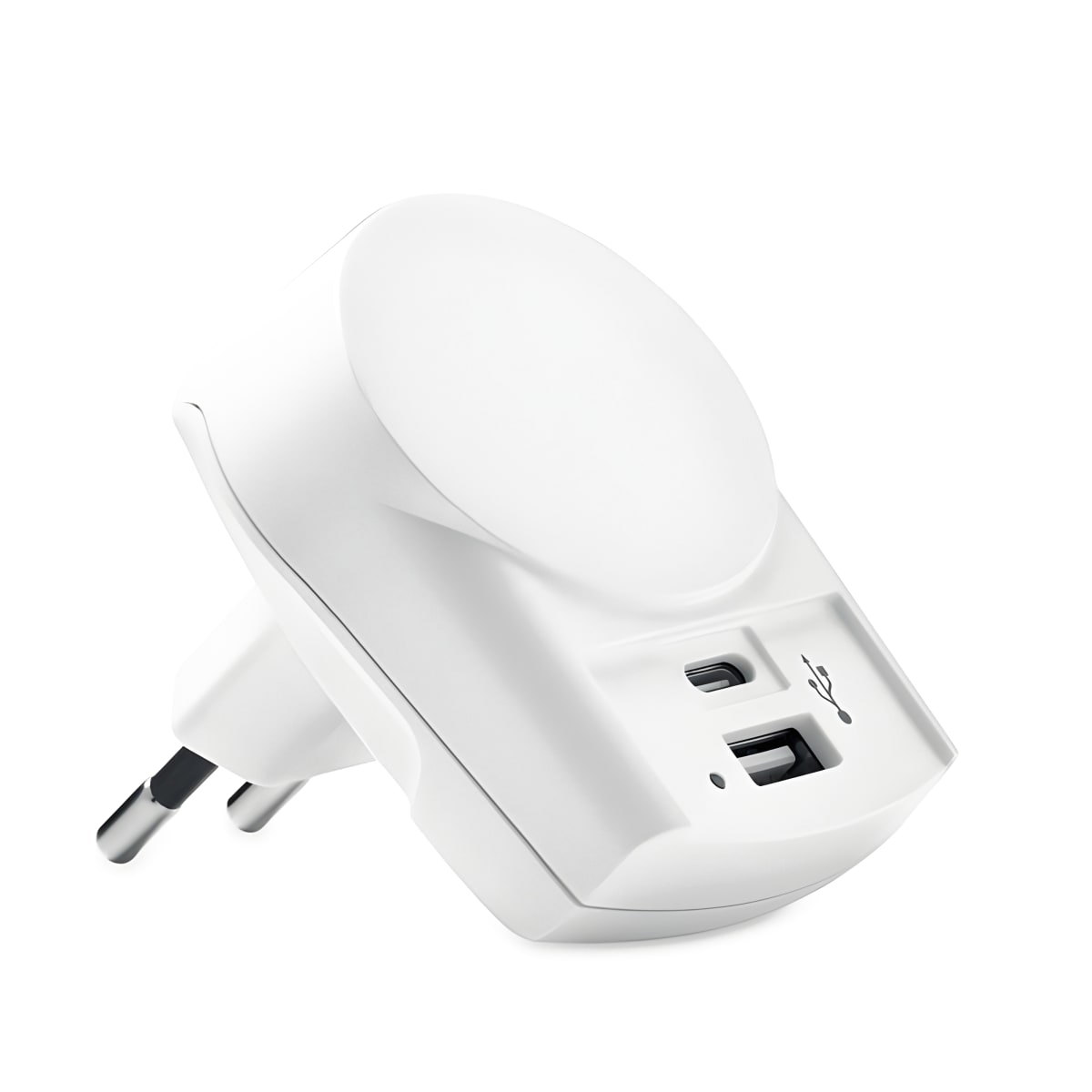 מטען USB אירופי כפול עם יציאות Type-C ו-Type-A