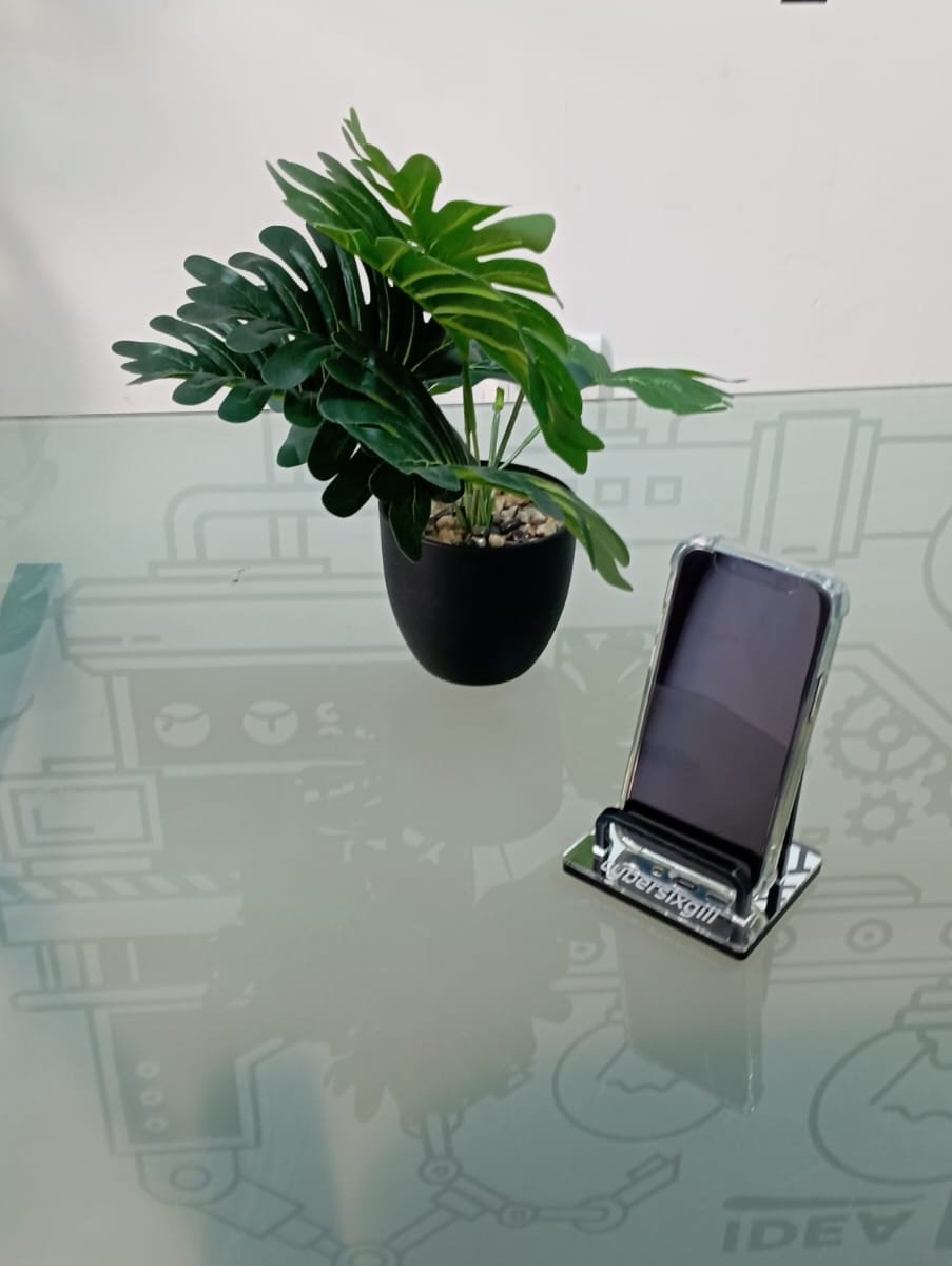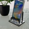 שדרגו את מראה השולחן שלכם עם מעמד לנייד בעיצוב ייחודי של מסלול משוכות. כולל בסיס מראה להגדלת האפקט האופטי.