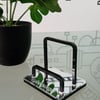 שדרגו את מראה השולחן שלכם עם מעמד לנייד בעיצוב ייחודי של מסלול משוכות. כולל בסיס מראה להגדלת האפקט האופטי. גודל המעמד: 8*7*7 ס"מ חומרים איכו