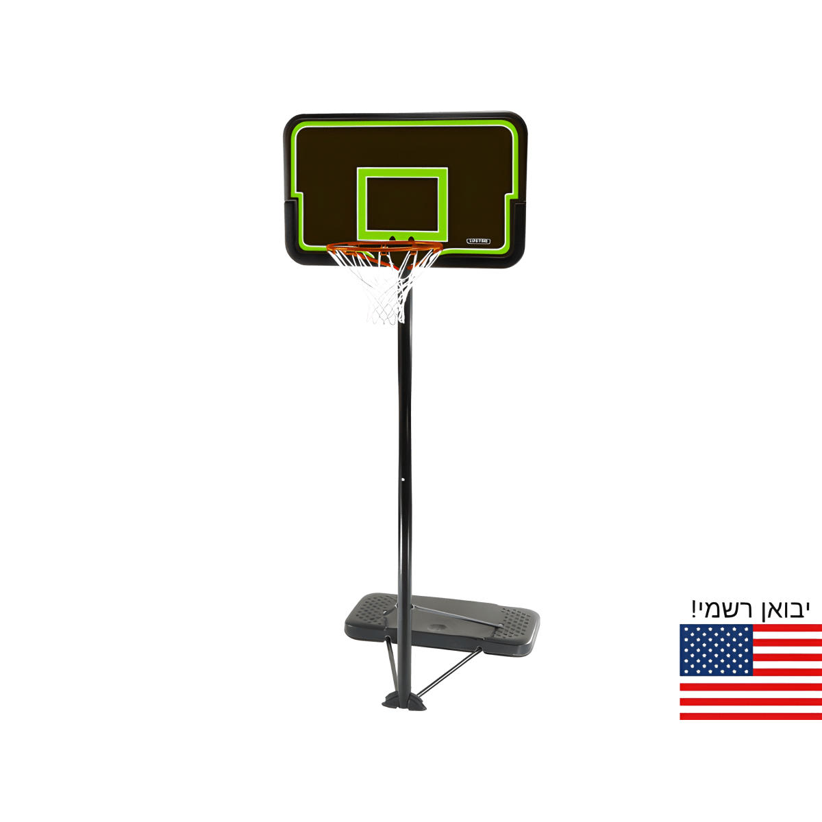 The Portable Adjustable 44-Inch Basketball Hoop by Life Time USA is perfect for both beginners and advanced players. It features an adjustable height from 229 to 305 cm with an easy-to-use telescopic pole. The 45.5-liter base provides convenient mobility.