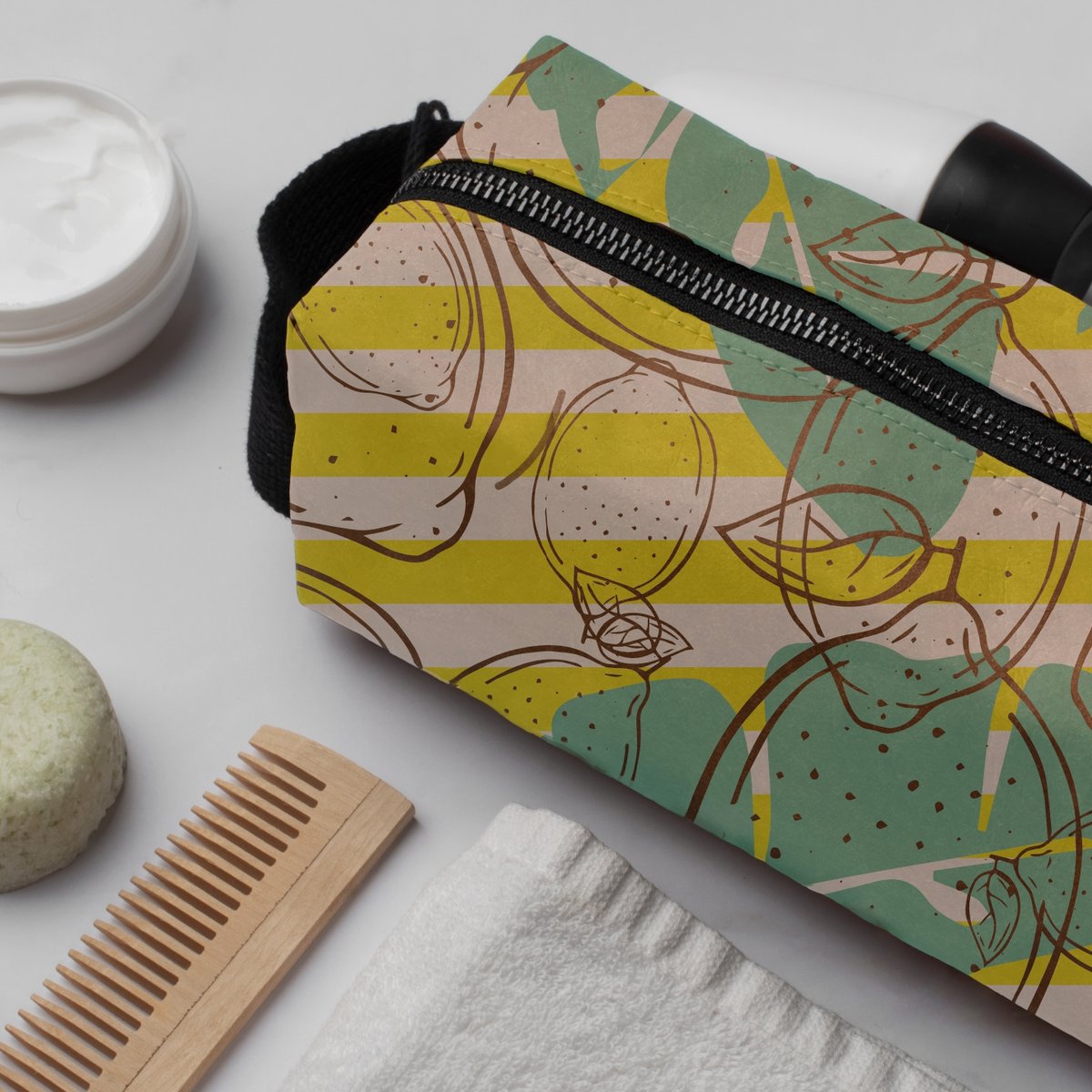 שדרג את חוויית הנסיעה שלך עם תיק רחצה מעוצב אישית - פתרון אידיאלי לאחסון מוצרי טיפוח בבית ובחוץ. התיק מיוצר מבד קנבס נעים למגע ומציע הדפס צב