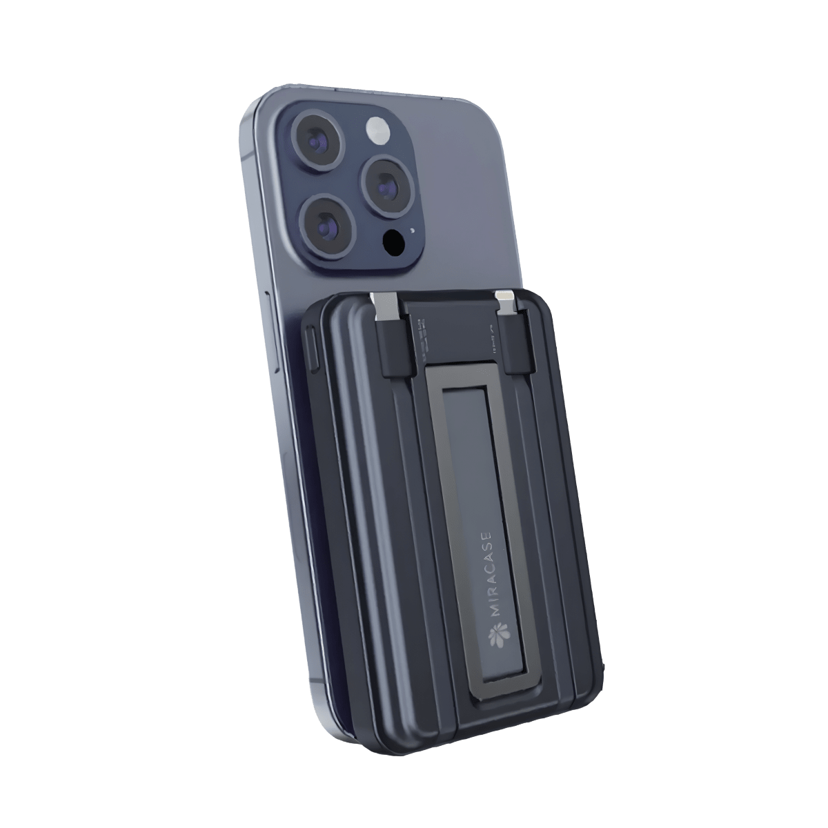 Ensure your devices stay powered with the Magnetic Backup Battery 10,000mAh from MIRACASE. Featuring built-in cables and a metal stand, enjoy ultimate charging convenience.