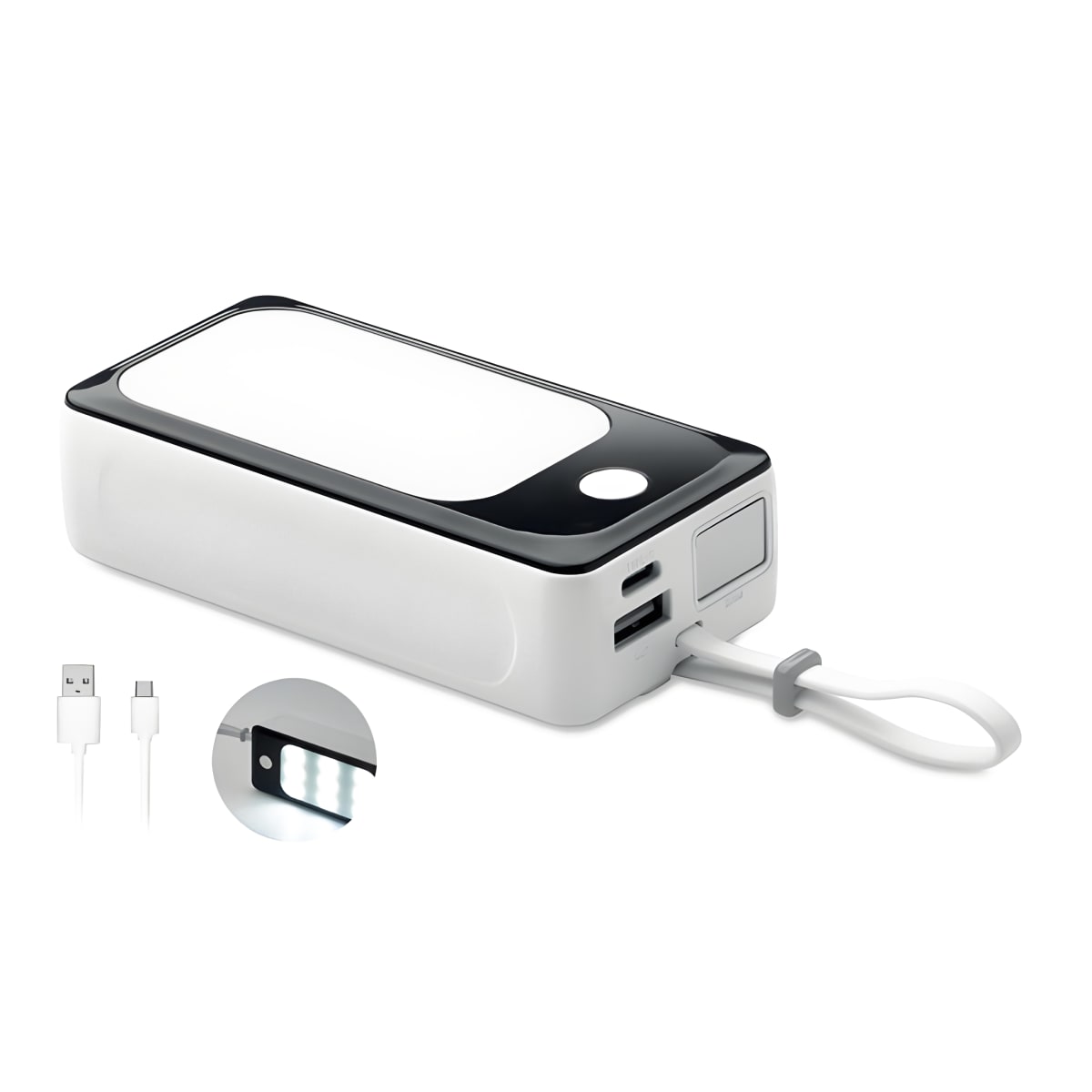Experience ultimate portable power with our 10000mAh power bank, featuring a durable ABS casing, DC5V/2A output with Type A and Type C ports, and a smart battery display. Equipped with 9 COB LED lights and an integrated Type C output cable, it supports Power Delivery 22.5W. Perfect for travel or everyday use.