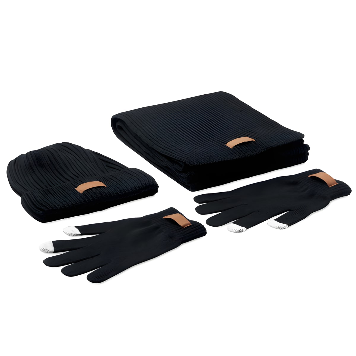 הכן את עצמך לחורף עם סט החורף המעולה שלנו. הסט כולל כובע RPET, צעיף וכפפות טקטיילים, כל אחד מהם מגיע עם אזור מותאם להדפסה. מושלם לחימום ועיצ