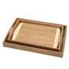 חוו את היוקרה והפונקציונליות עם הסט שלנו הכולל שני מגשים ומשטח חיתוך מבמבוק איכותי. מידות: מגש ראשון 5X29X40 ס"מ, מגש שני 5X24X35 ס"מ, ומשטח