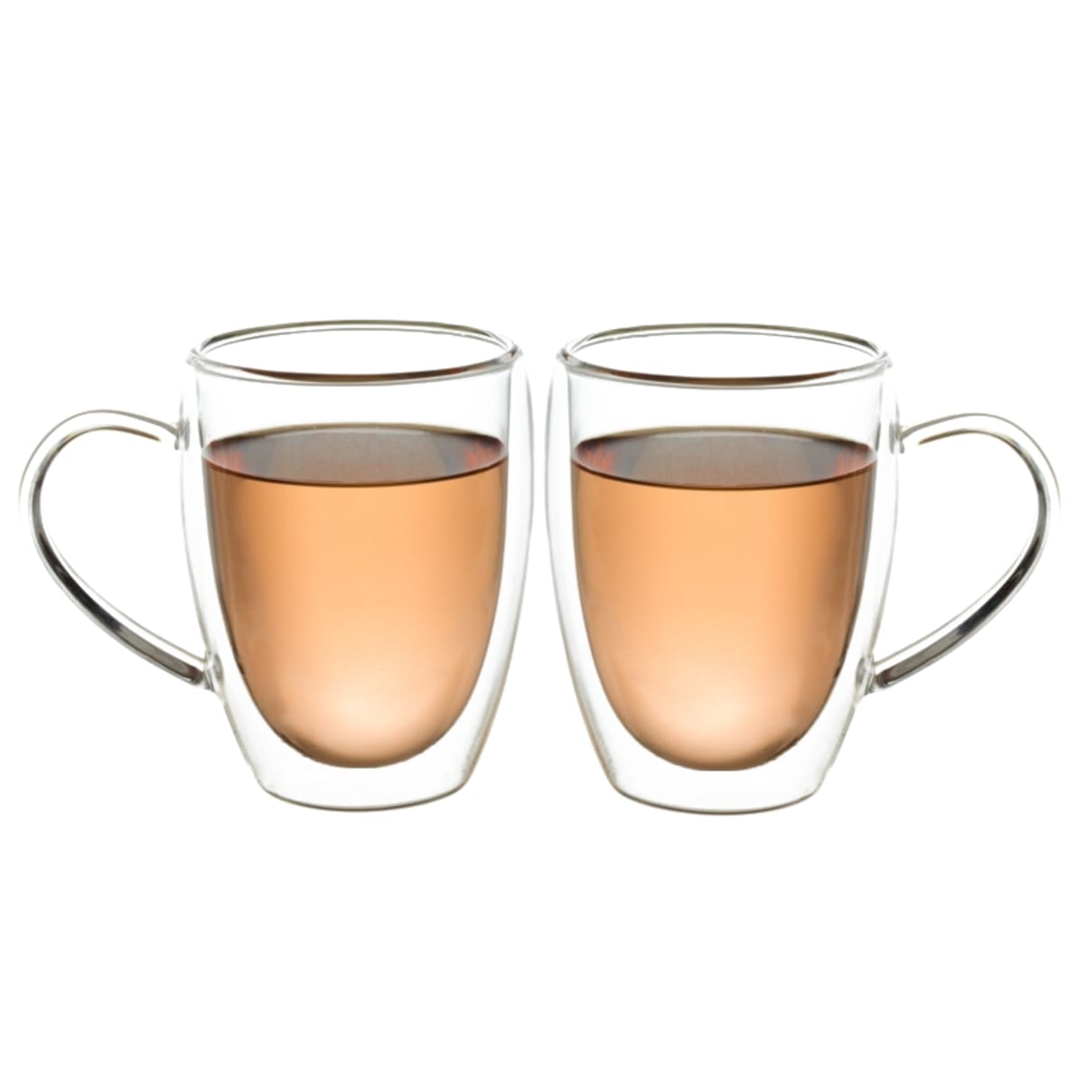 סט כוסות זכוכית כפולה עם ידית - מתנה מושלמת