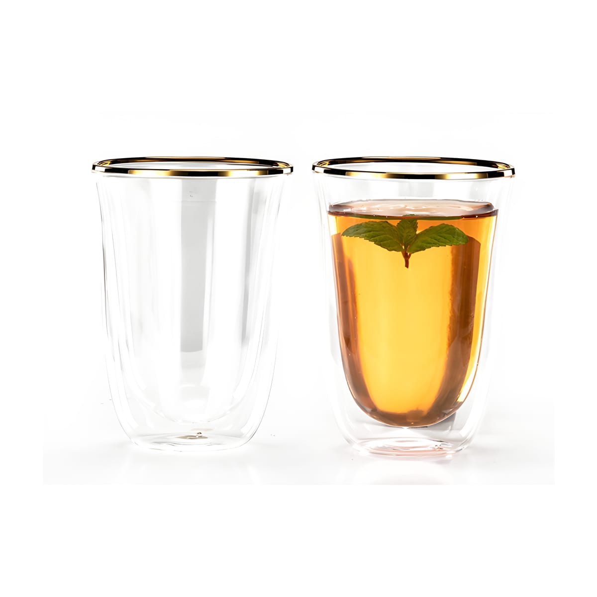 גלה את סט הכוסות המוביל בעיצוב מרשים! סט זה כולל 2 כוסות עם דופן זכוכית כפולה ושוליים זהב, מבודדות חום בנפח של 300 מ"ל מפוארות ובעלות עמידות