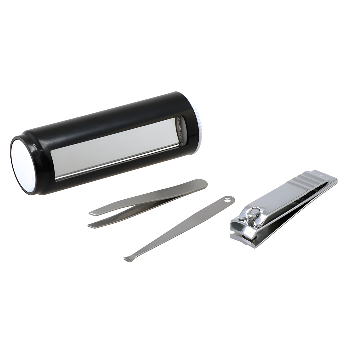 גלה את סט המניקור המושלם בקופסת גליל קומפקטית ומרהיבה עם מראה מובנית. הסט כולל קוצץ ציפורניים, מנקה אוזניים ופינצטה איכותיים. מידות: 7.5x2.7
