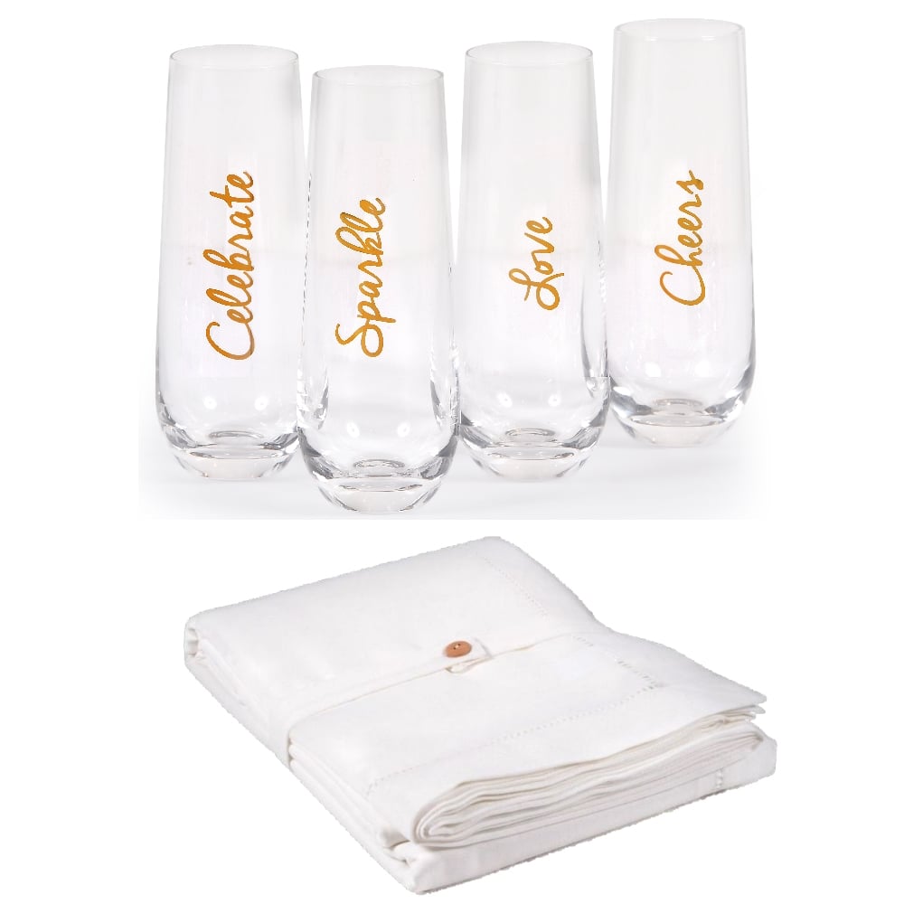 סט מפה לבנה חגיגית וכוסות שמפניה מבית FOX