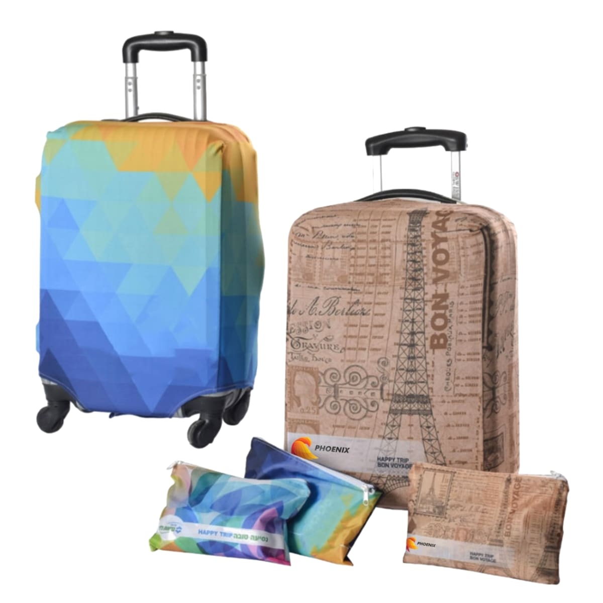 הכינו את עצמכם לחופשה עם הסט המושלם שמביא סדר ונוחות. הסט כולל: כסות מזוודה ממותגת בעיצוב אופנתי, בגודל 28" תיק טואלטי תואם מעוצב זמין ב