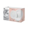 סט ערבוב יוקרתי עם 18 חלקי זכוכית לבנים מבריקים - מיועד לשישה סועדים. עיצוב אלגנטי ונקי שמתאים לאירועים יומיומיים וחגיגיים. הצלחות קלות במשקל, עשויות מזכוכית אנטיבקטריאלית שאינה סופגת נוזלים או שאריות אוכל.