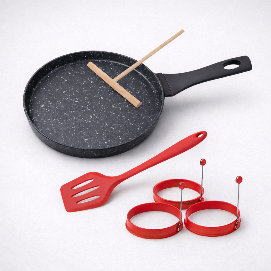 סט פנקייק מושלם עם מחבת נון סטיק ואביזרים