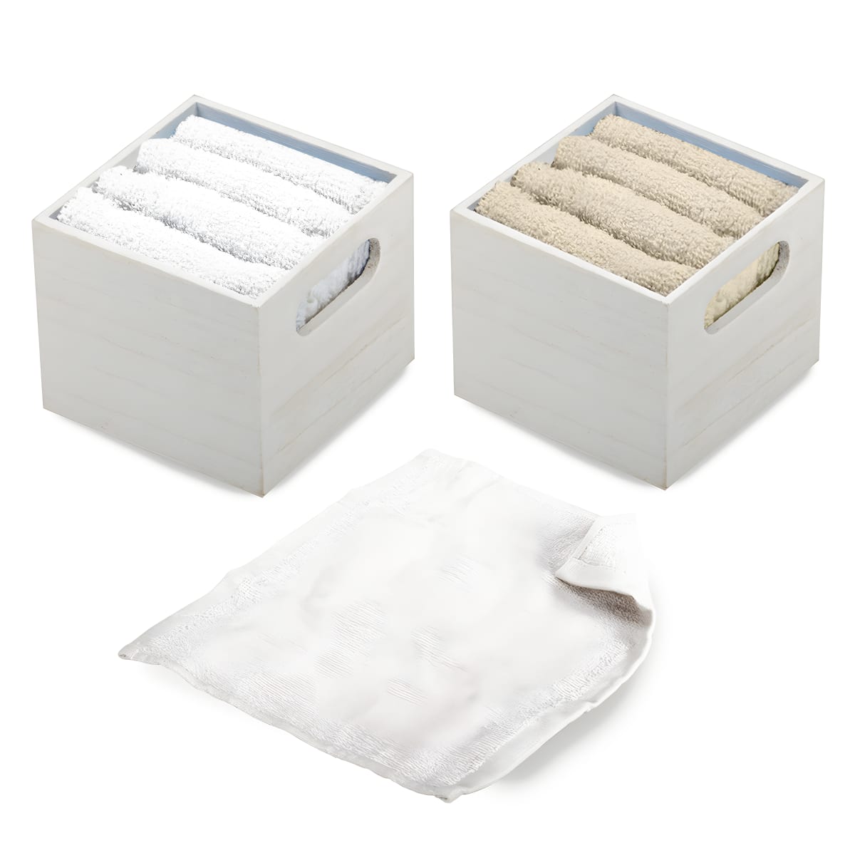 העצימו את חווית הרחצה שלכם עם סט של 4 מגבות ידיים איכותיות, עשויות 100% כותנה. כל מגבת בגודל 25*25 ס”מ, מגיעות במארז עץ מהודר שמוסיף סטייל ל