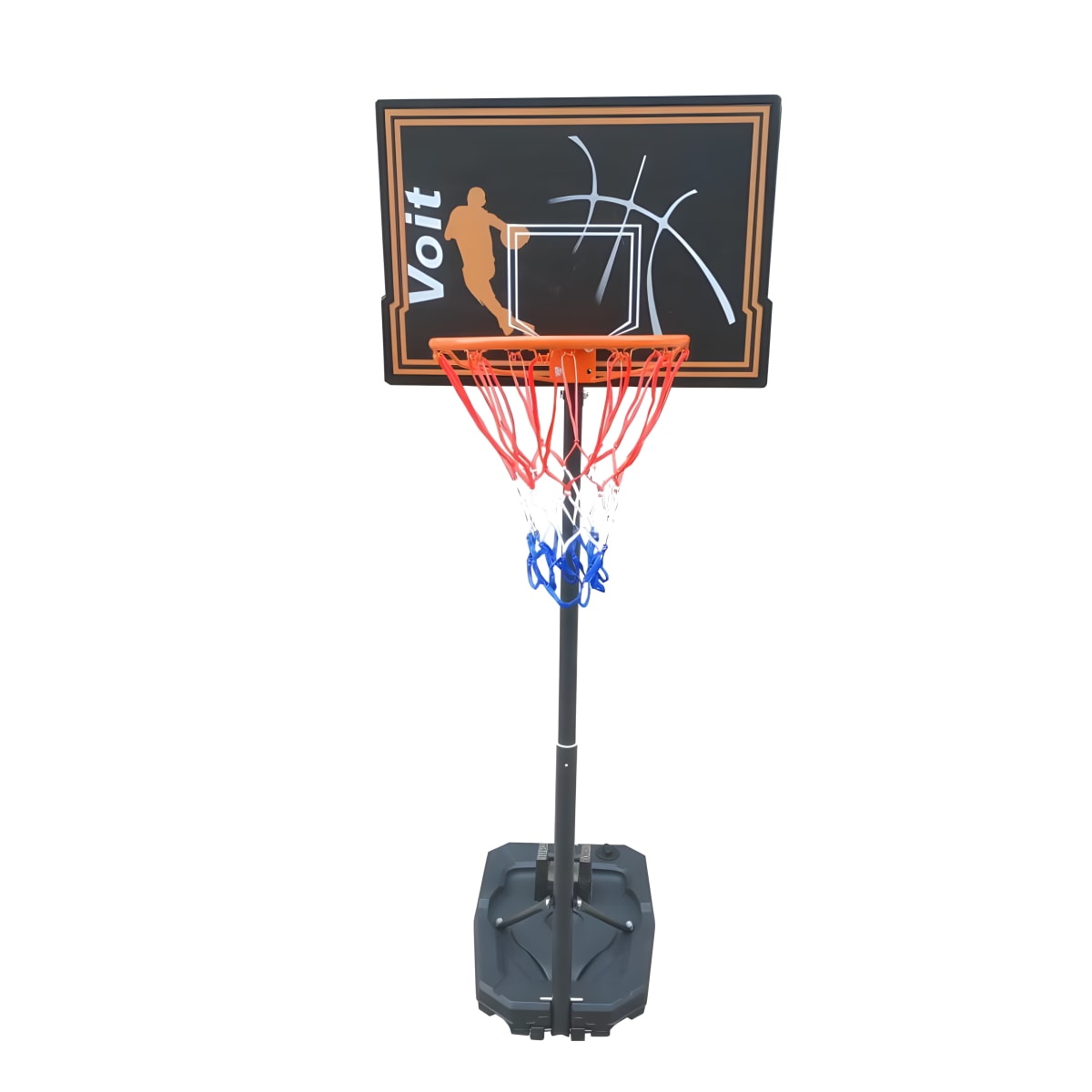 Enjoy an exciting basketball game at home with our adjustable hoop. A reinforced polyethylene backboard sized 70x46 cm provides stability and professionalism. The hoop height is adjustable from 1.65 to 2.2 meters, ideal for kids and teens. The rim measures 40 cm in diameter, and the system includes 2 wheels for easy mobility. The telescopic design offers flexible height adjustments. The water tank sized 50x75x10 cm with a 30-liter capacity enhances stability during play.