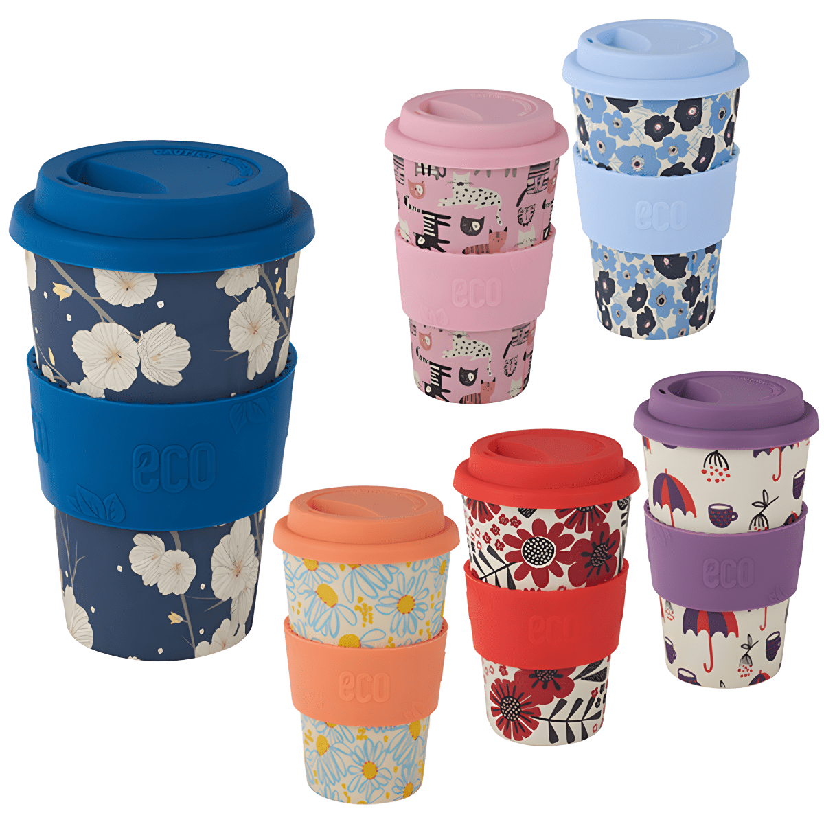 ספל אקולוגי 400 מ"ל עשוי במבוק עם חבק סיליקון בהדפסים שונים