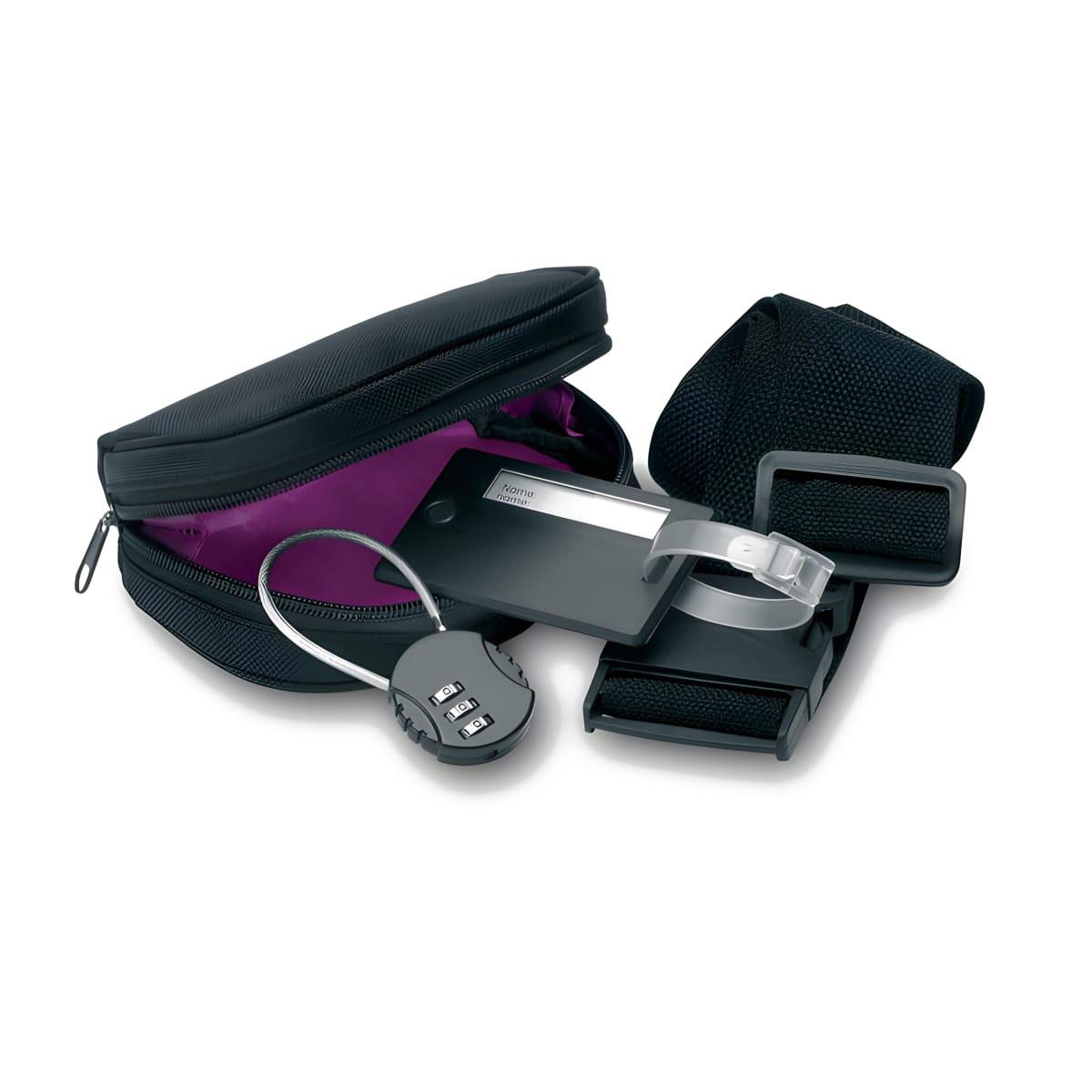 ערכת טיול מושלמת עם תג מזוודה, חגורה ומנעול מתכת