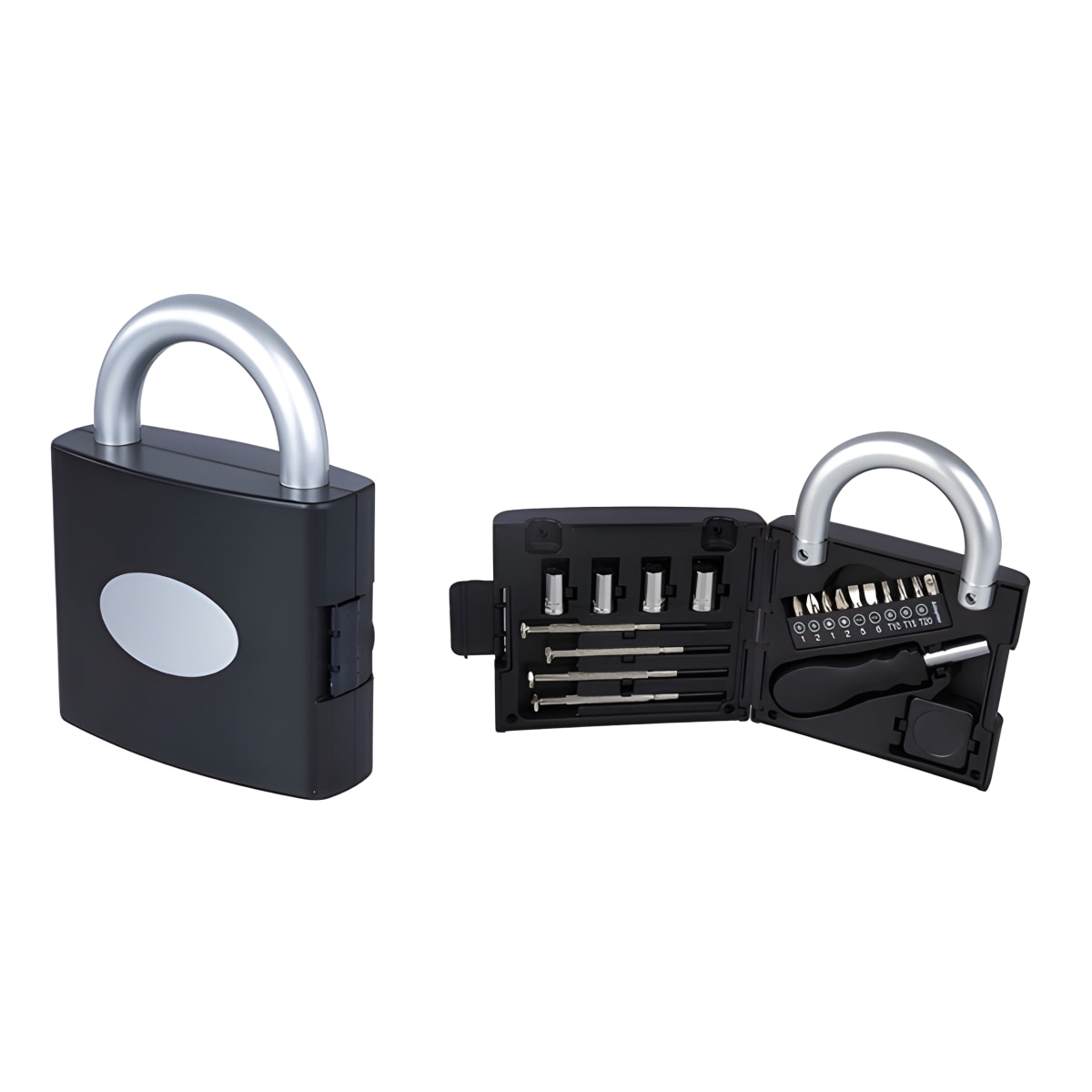 גלה את מערכת הכלים האולטימטיבית לחירום וליומיום, הכוללת 20 חלקים חשובים כמו מטר, 4 מברגים, 10 ביטים, ידית הברגה אוניברסלית ו-4 בוקסות. כל הכלים מאוחסנים במארז פלסטיק עמיד וקל לנשיאה בעיצוב מנעול קטן. מידות הקופסה הן גובה 16 ס"מ בצבעים כסוף ושחור.