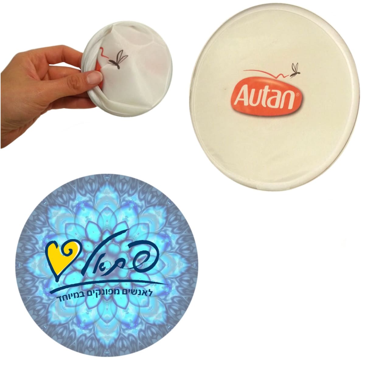 גלה את הפריזבי המתקפל והנוח שלנו, עוצב כדי לספק טיסה מושלמת ואינו מזיק. אפשרות להוסיף הדפסה צבעונית מלאה או חלקית לפי הצורך, המחיר כולל לוגו