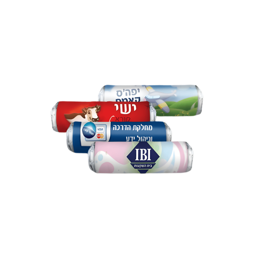 מיני מנטוס - בטעמים מובחרים עם עטיפה אישית המודפסת בצבע מלא ניתן להדפיס לוגו /כיתוב כשרות: חתם סופר בני ברק *מינימום 100 יח'