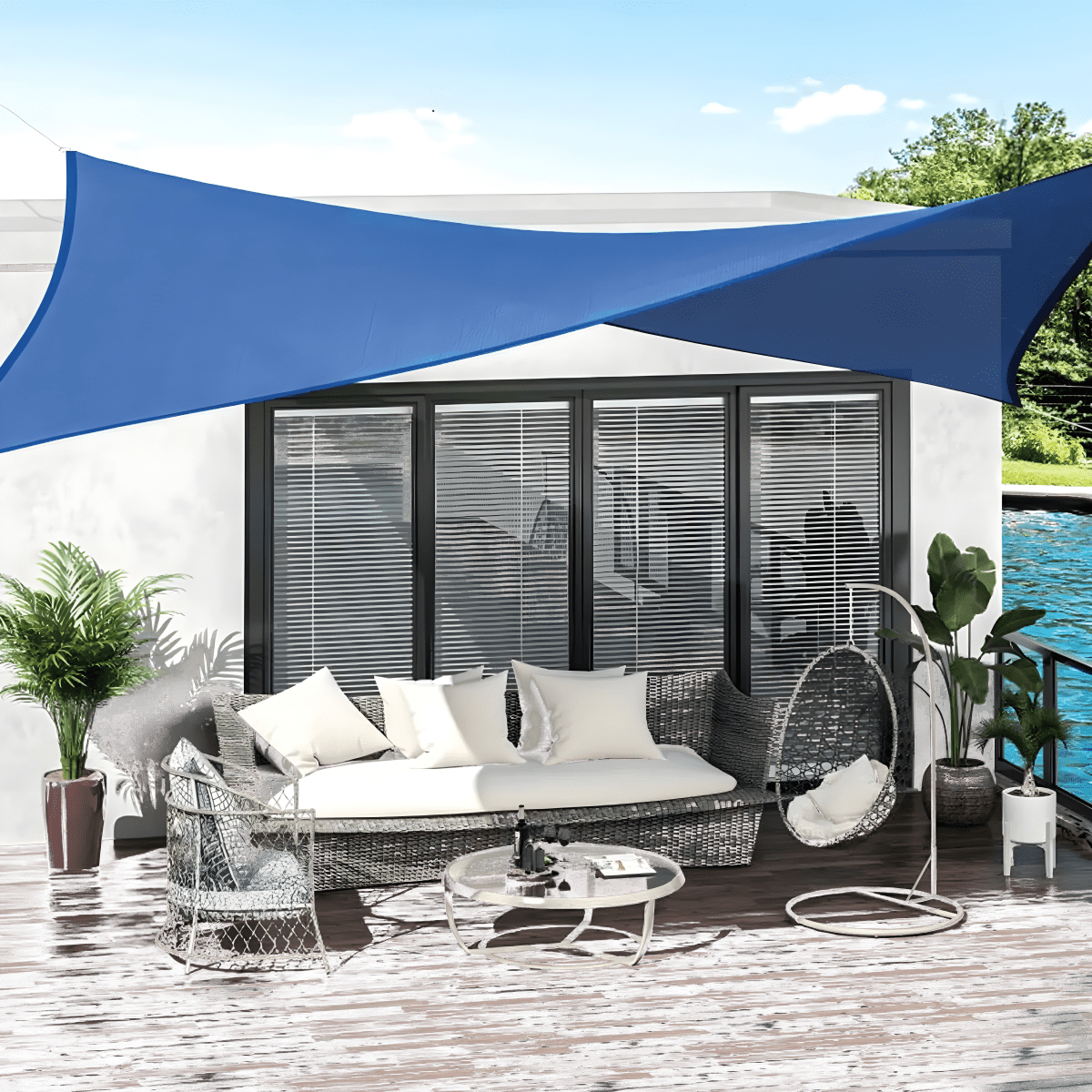 רשת צל כחולה 5X5 מטר עם טבעות אלומיניום ותיק נשיאה