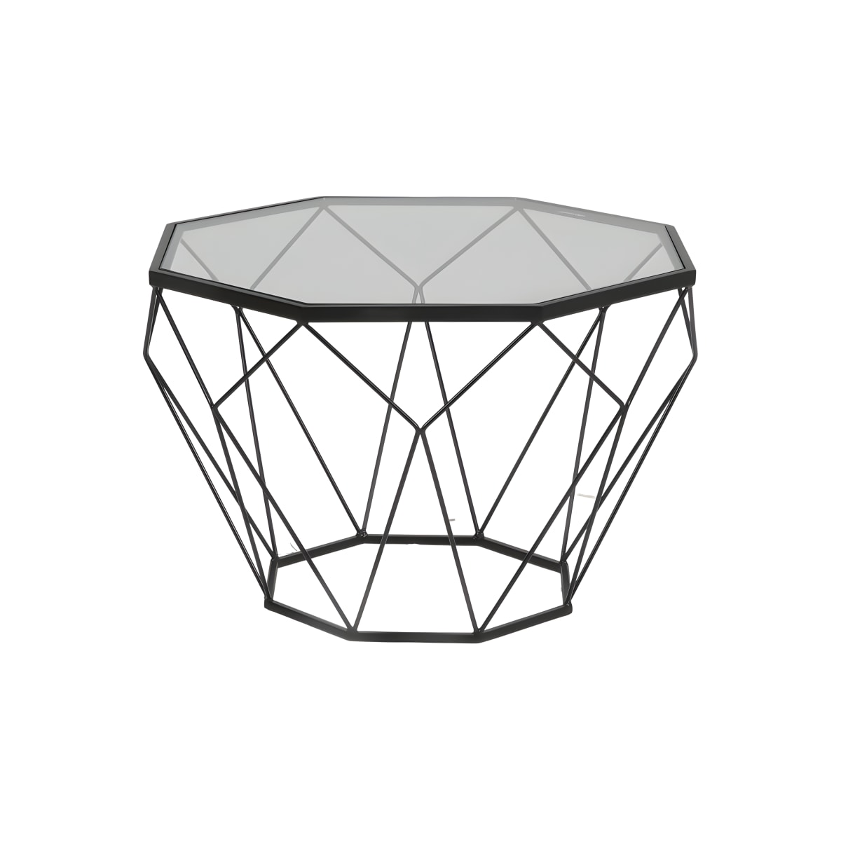 Enhance your space with a stylish coffee and hosting table ready for any event. A transparent glass tabletop on a black metal frame adds a m