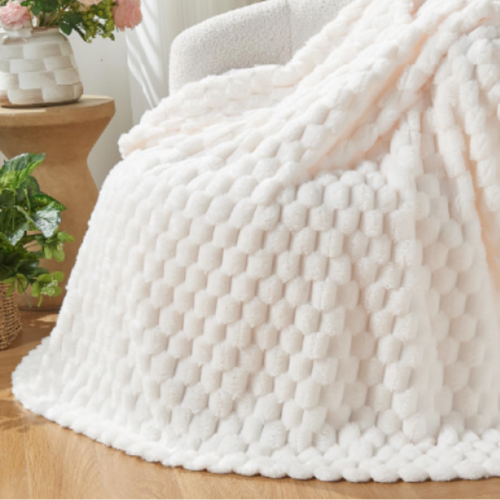 חוויית חורף חמה עם שמיכת ז'אקארד קוביות. דגם יחיד במידות 170x130 ס״מ במשקל 800 גרם ודגם זוגי במידות 200x150 ס״מ במשקל 1100 גרם. מושלם לע